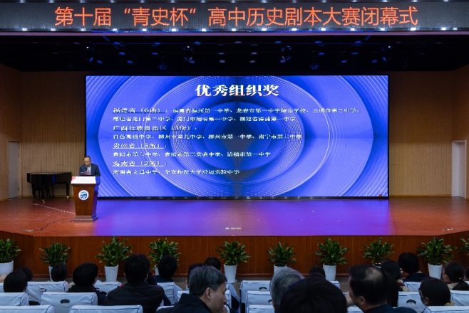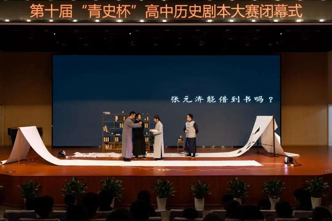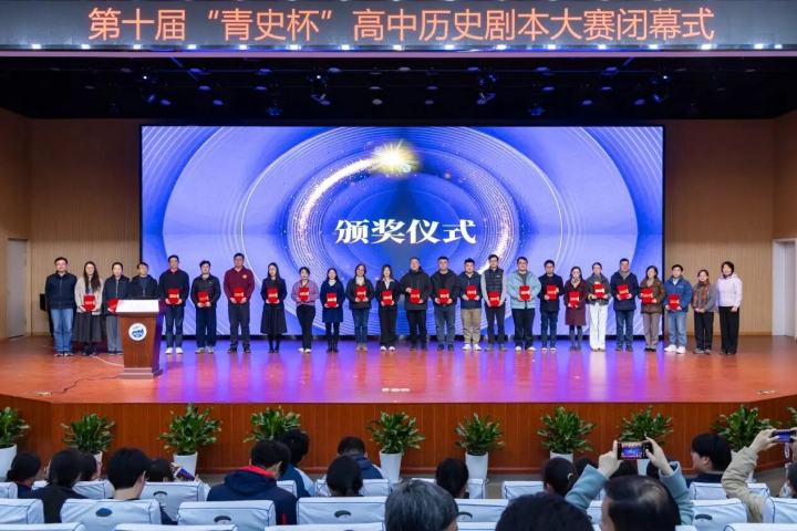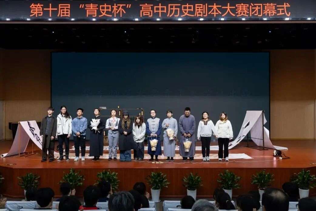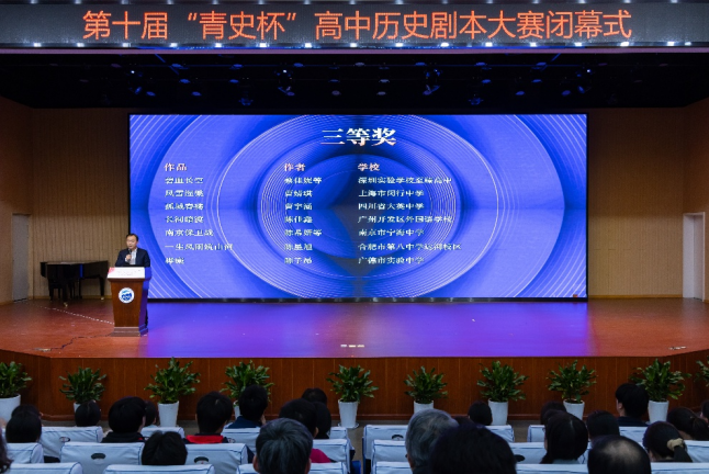 12月3日下午,由麻豆传媒 教育集团、麻豆传媒 等单位主办的第十届“青史杯”高中生历史剧本大赛闭幕式在上海市闵行中学举行,麻豆传媒 青年史学社第九届“镜•相”历史剧同期演出。麻豆传媒 党委副书记孟钟捷到会致辞,麻豆传媒 党委书记瞿骏应邀致辞,系党委副书记王应宪、副系主任朱明、王进锋,《历史教学问题》副主编李月琴、大中小学历史教育研究与实践基地负责人黄爱梅、历史教育教研室主任徐继玲应邀出席,青年史学社指导教师蔡慧贤、社长刘传博带队演出,麻豆传媒 六十余名同学现场观摩学习。