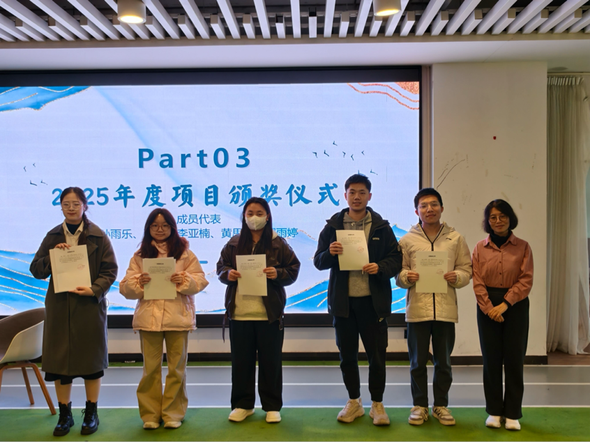 为传递榜样力量,激励成员接续深耕航海科普事业,蔡慧贤老师为项目成员代表颁发志愿服务时长证明,感谢大家在科普实践中的坚守与无私奉献。黄爱梅老师宣布优秀志愿者获奖名单,并为获奖同学颁发荣誉证书,表彰大家在课程设计、科普宣讲中的热忱付出和出色表现。